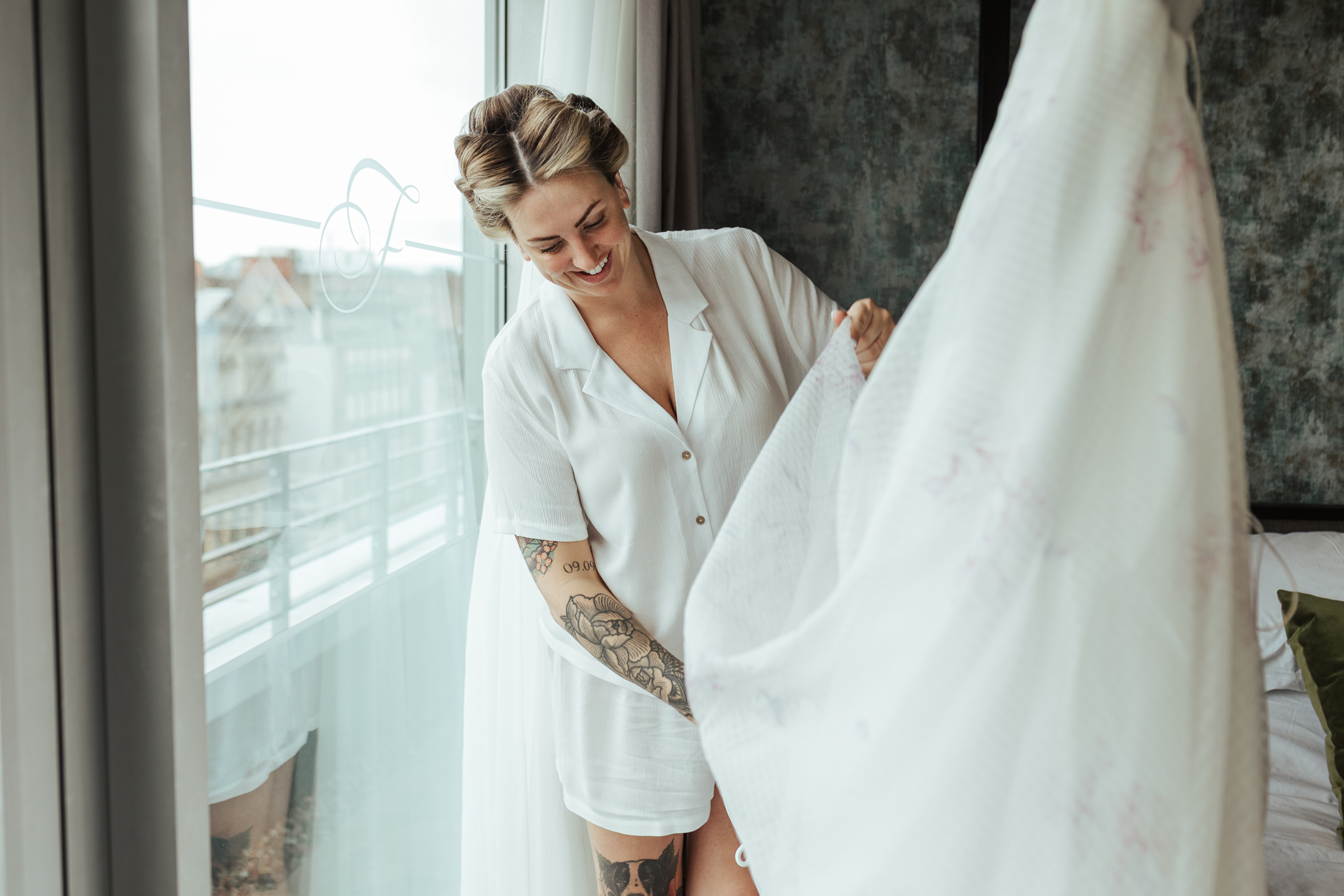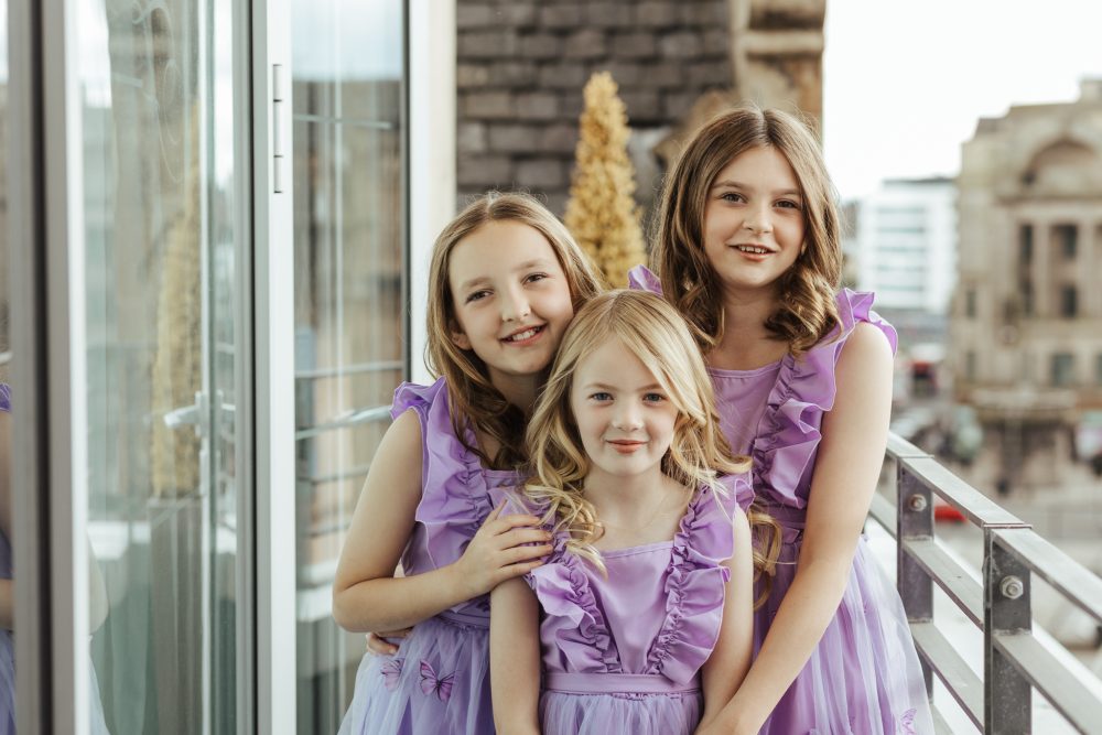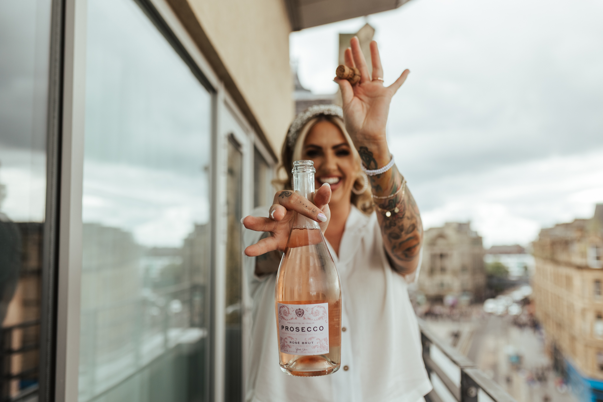 I arrived at the Fraser Suites about 8am and hair & make-up was in full swing because there was quite a few girls to beautify! These serviced apartments overlook the rooftops of Glasgow’s Argyle Street and the girls had the Penthouse, which meant there was a balcony and incredible urban views for the first part of the day!