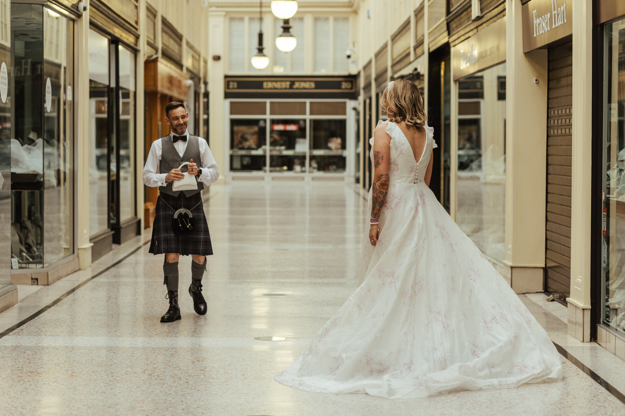 It wasn’t over yet!! Once the puddings had been eating, the Party Party started! But before I let them loose on the dance floor, I persuaded them to let me take them for a micro shoot in the Arygle Arcade, which we were permitted access to even though it was closed!