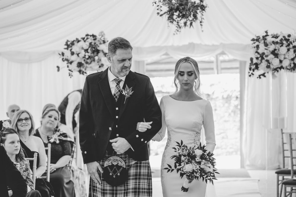 I arrived at Cornhill Castle bright & early at 8am, welcomed by a beautiful cloud sprinkled blue sky. It’s always exciting to shoot a new venue, so arriving this early allows me time to soak up the venue and grounds, and hunt out any places that I think might allow me to create something a little different. It’s one of my favourite parts of the day, and I think it reduces that photographers anxiety when you know exactly what you’re going to ask of your couple when the time comes!