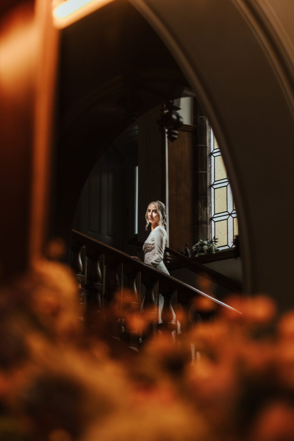 It was finally time for the ceremony, I knew I wanted to capture Sophie walking down that stairway with her dad, so I stayed for that and then ran ahead of them to get into position in the ceremony room.