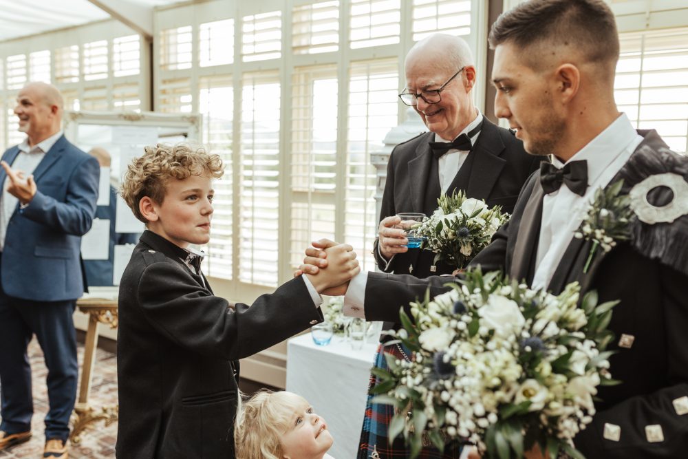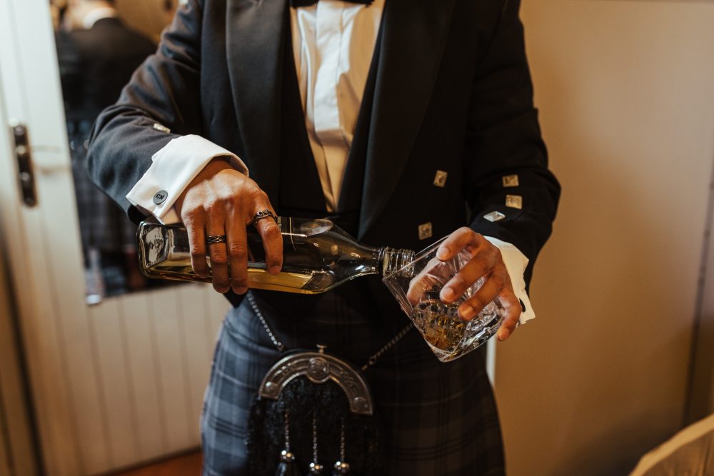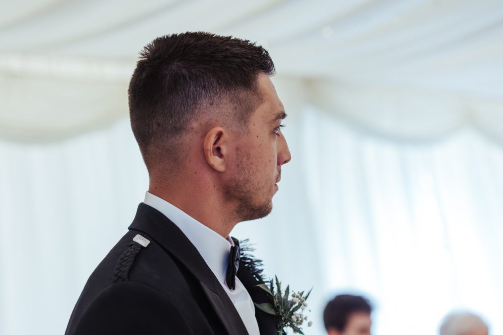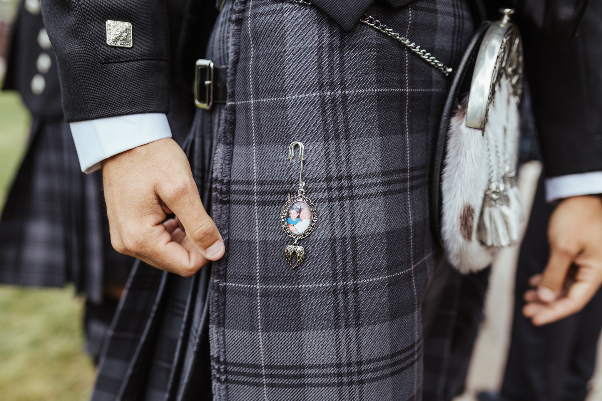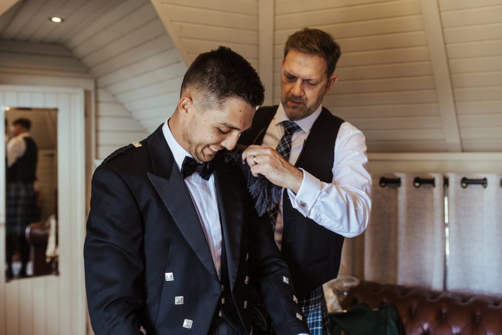 Jake’s new Father-in-law was in charge of placing the fly plaid brooch on and making sure it all sat perfectly, while his dad was charged with putting on the Kilt pin which featured family no longer with us. These little moments are so important to capture.