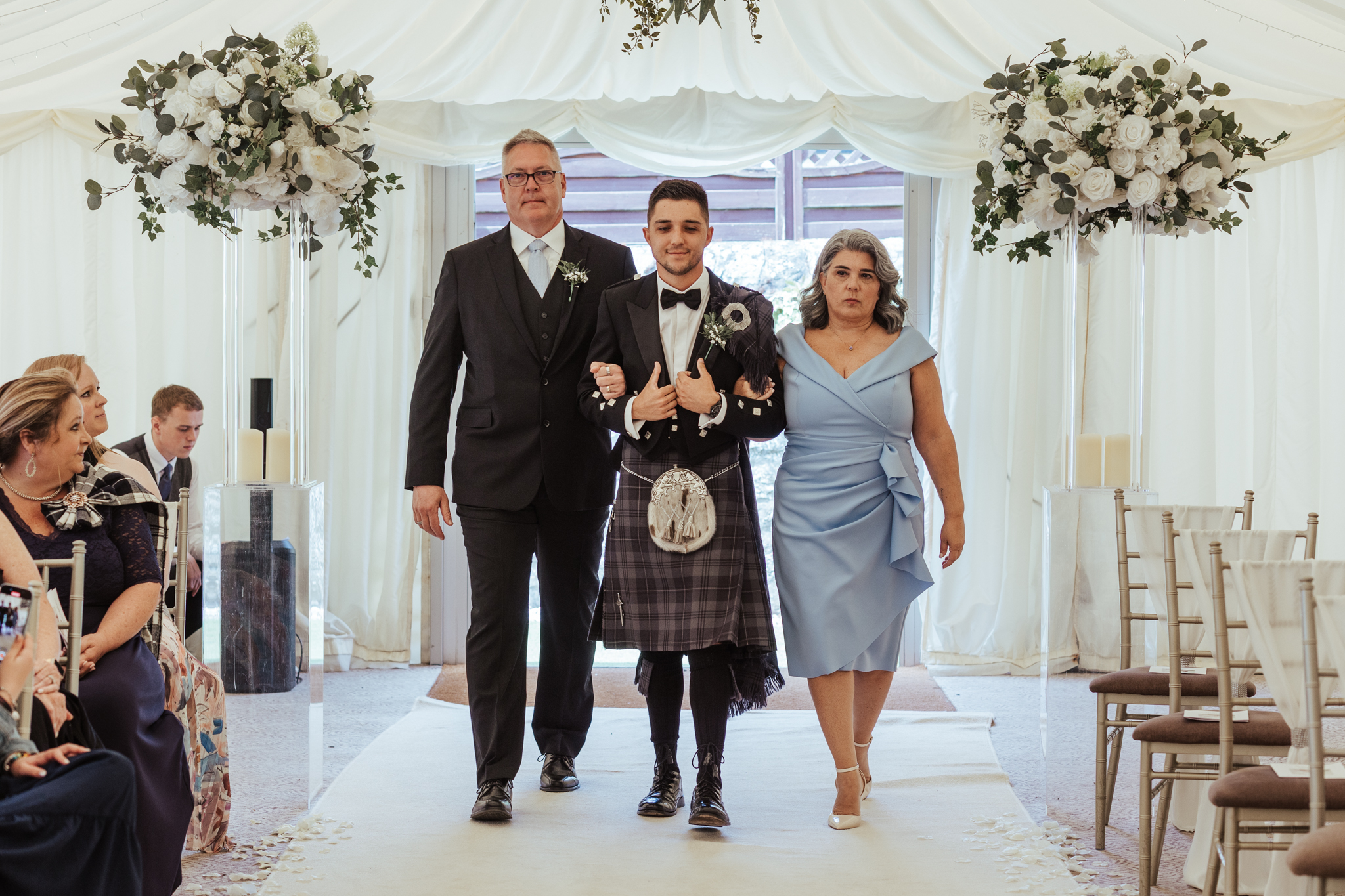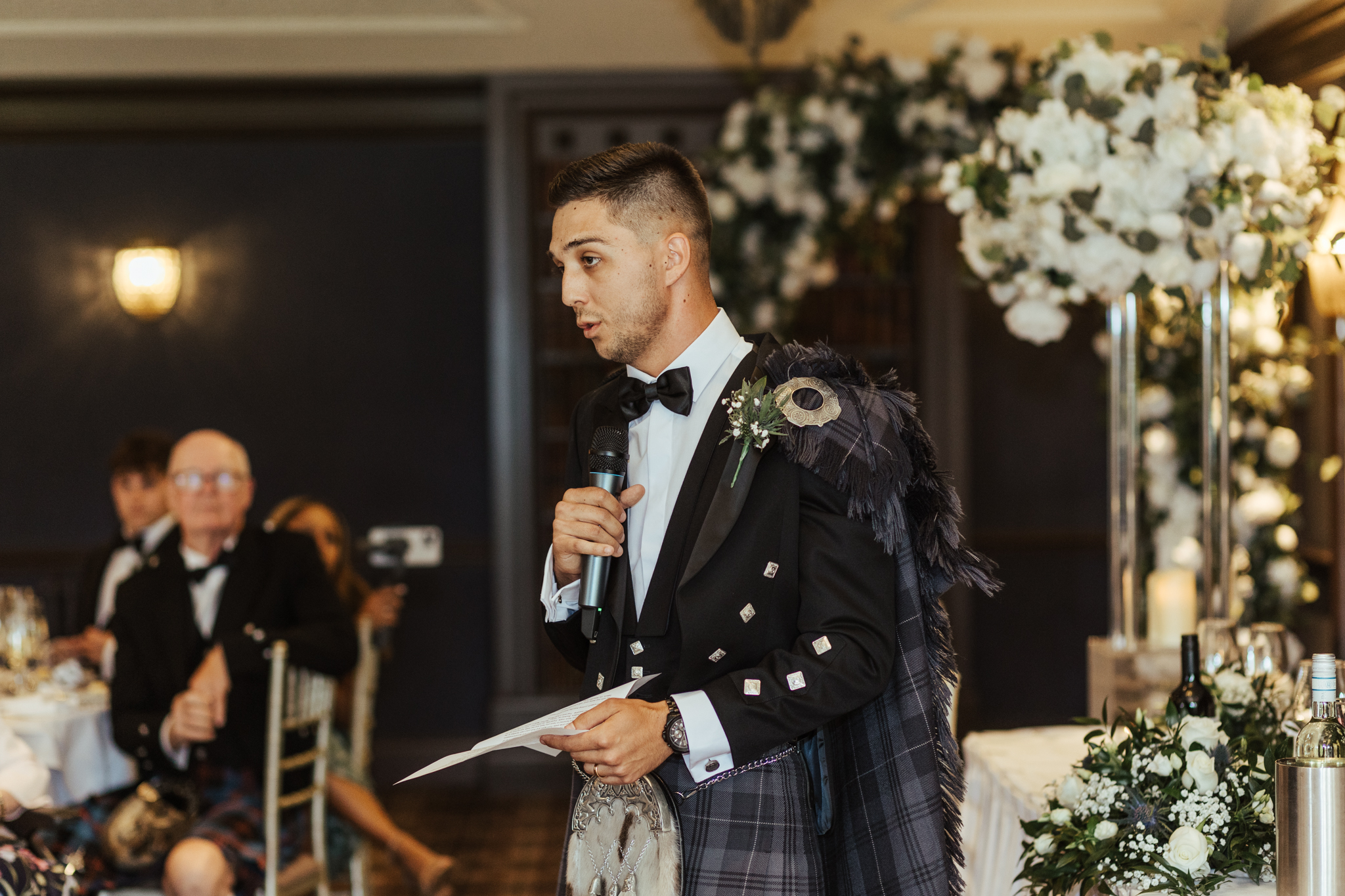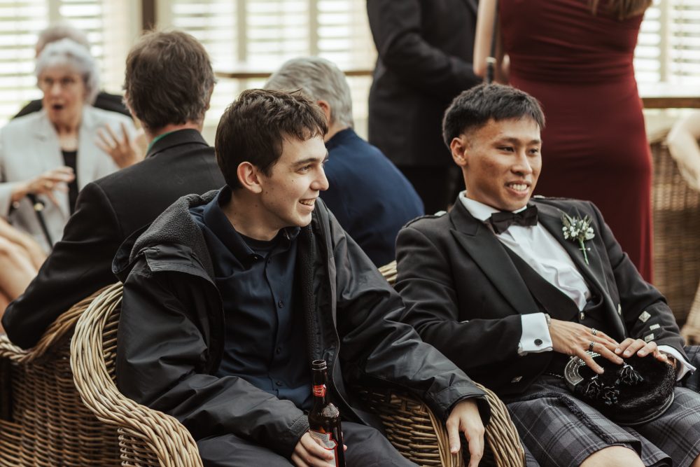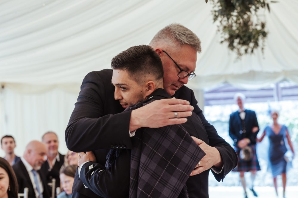 Jake’s new Father-in-law was in charge of placing the fly plaid brooch on and making sure it all sat perfectly, while his dad was charged with putting on the Kilt pin which featured family no longer with us. These little moments are so important to capture.